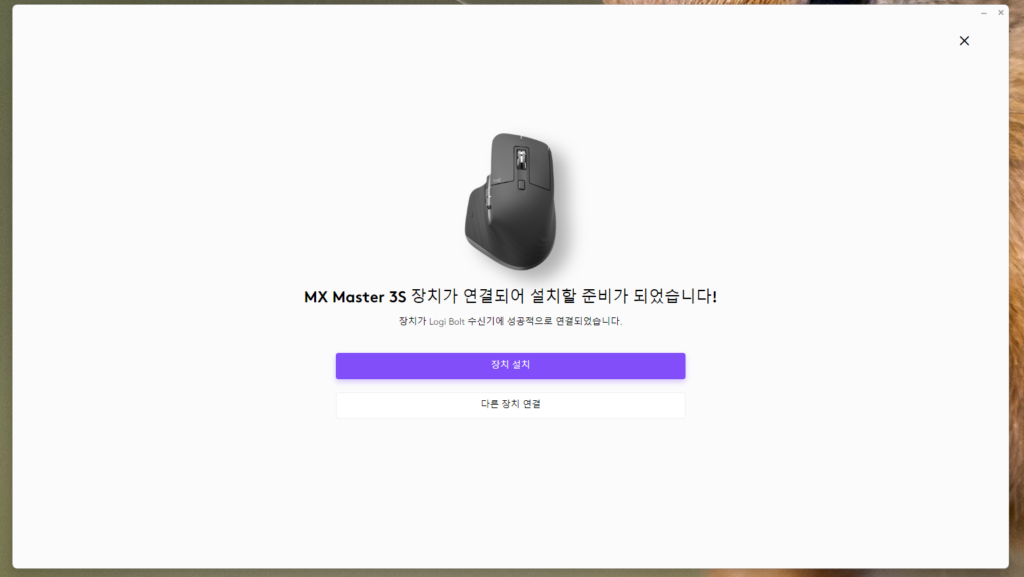 ▲ Logi Bolt 수신기와 블루투스 중 장치 연결 방식을 선택합니다.