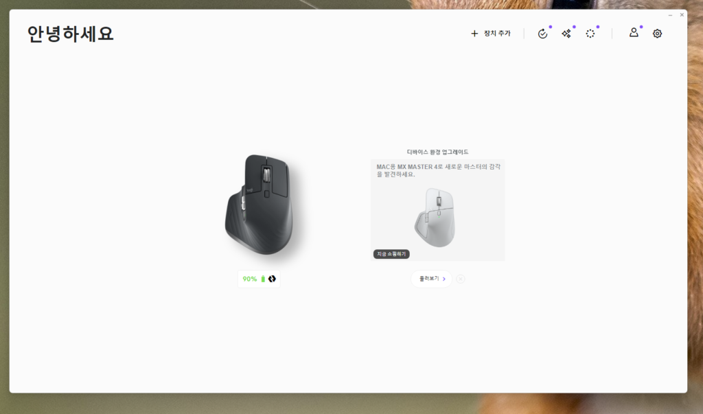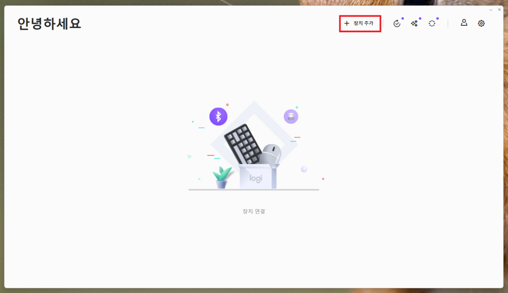 ▲ 로지텍 마우스 드라이버 Logi Options+ 설치가 완료되면, 장치를 추가하기 위해 [장치 추가]를 클릭합니다.