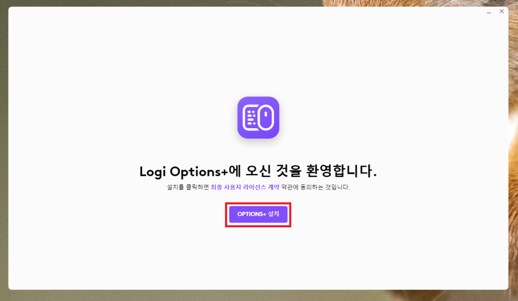 ▲ 설치 프로그램이 실행되면, [OPTIONS+ 설치]를 클릭합니다.