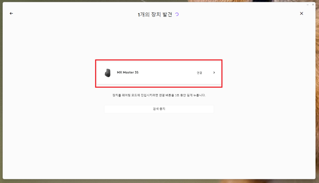 ▲ 장치 검색이 완료되면, 연결할 장치를 클릭합니다.