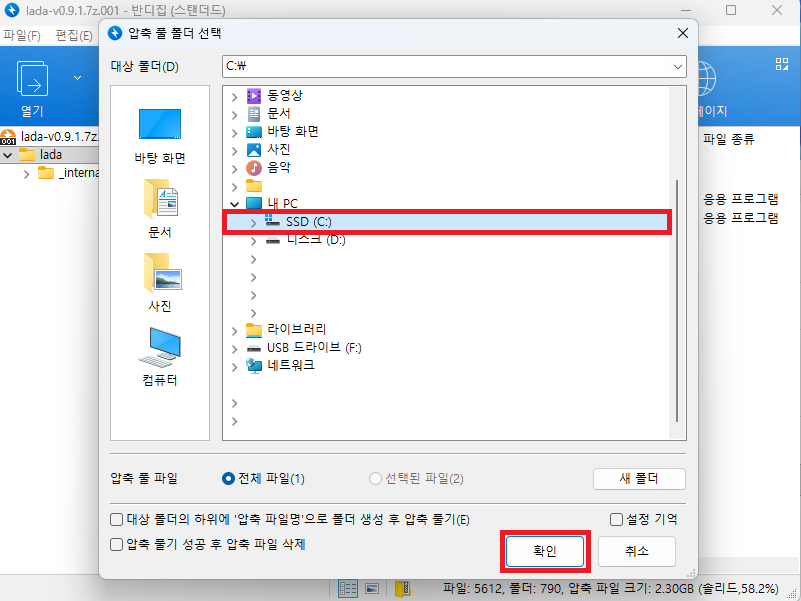 ▲ 다운로드한 lada.7z 파일을 압축 프로그램을 통해 압축을 해제합니다.