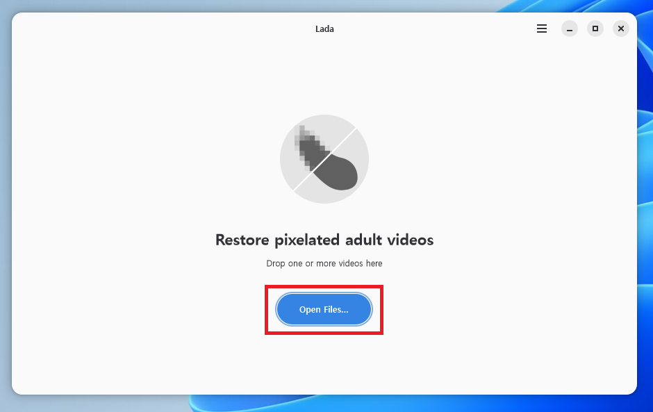 ▲ 모자이크 제거 프로그램 lada가 실행되면, [Open Files…]를 클릭하여, 모자이크를 제거할 프로그램을 업로드 합니다.