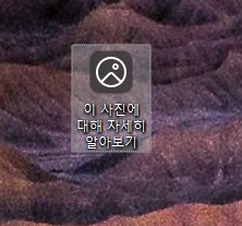 ▲ 위와 같이 윈도우 바탕화면에 이 사진에 대해 자세히 알아보기 아이콘이 우측 상단에 나타나며, 아무리 삭제하려고 해도 아이콘이 없어지지 않아 불편한 경우가 있습니다.