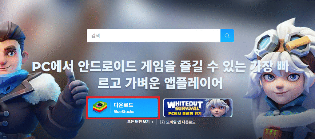 ▲ 하단에 있는 링크를 통하여 블루스택 다운로드 페이지로 이동합니다.