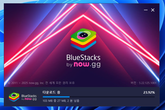 ▲ 그럼 위와 같이 블루스택 다운로드 및 설치가 진행됩니다.
