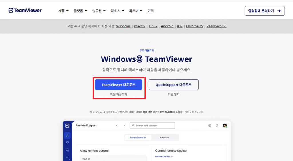 팀뷰어 다운로드 페이지 바로가기 (TeamViewer Download)
