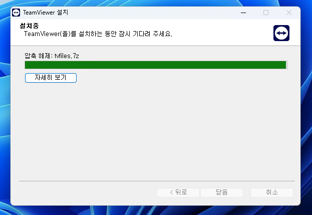 ▲ 팀뷰어 설치가 완료되면, [닫음]을 클릭하여 설치 프로그램을 닫아줍니다.