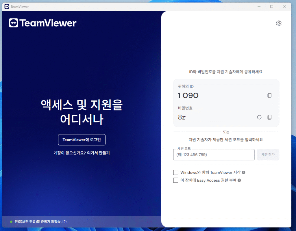 귀하의 ID와 비밀번호를 통해 다른 PC에 원격 접속을 하거나 원격 지원을 받을 수 있습니다.