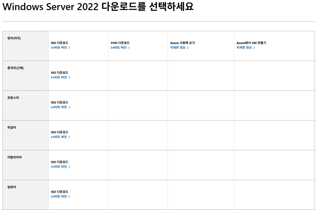 ▲ 하단에 있는 링크를 통하여 윈도우 서버 2022 iso 파일 다운로드 페이지로 이동합니다.