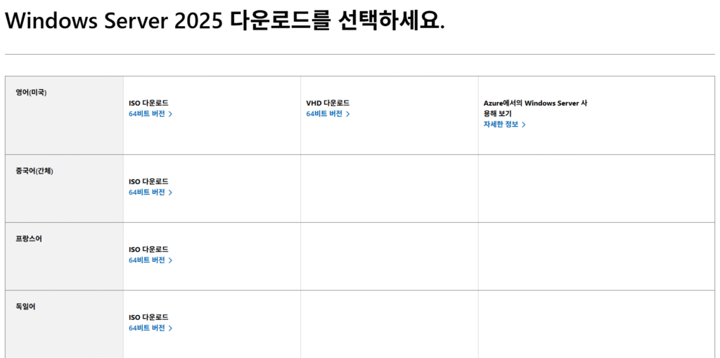 ▲ 하단에 있는 링크를 통하여 윈도우 서버 2025 (Windows Server 2025) iso 다운로드 페이지로 이동합니다.