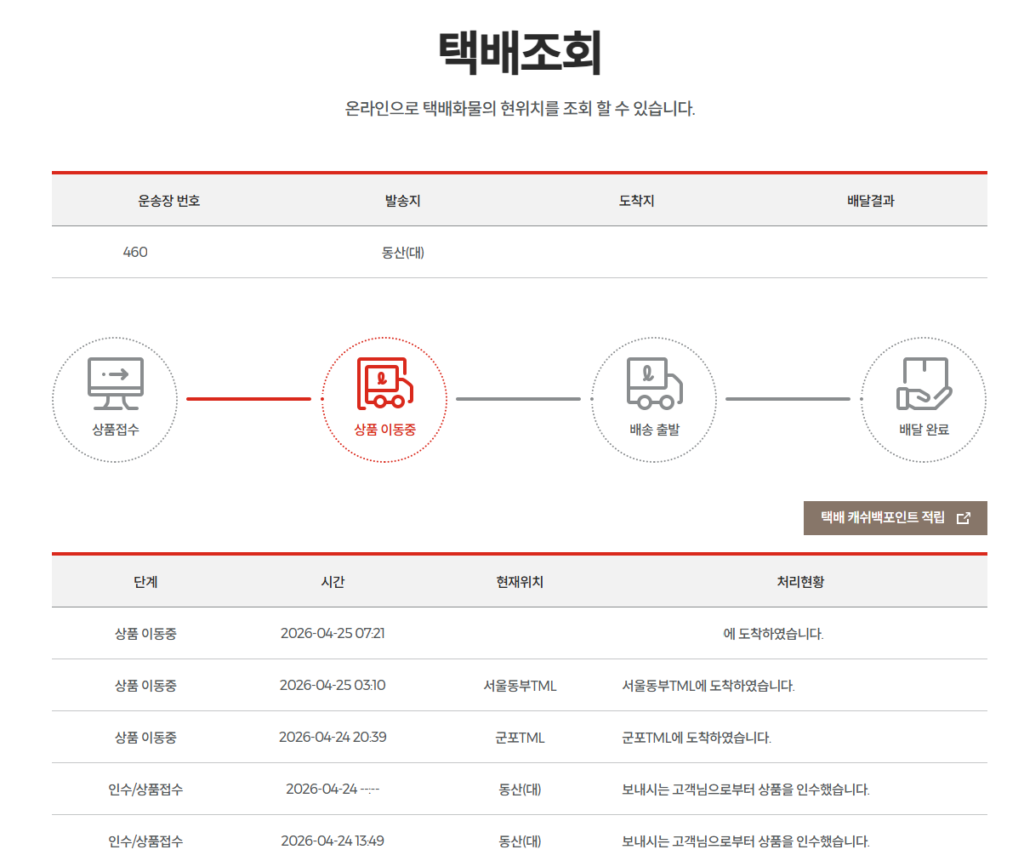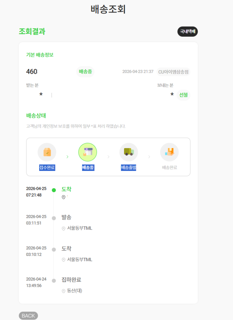 ▲ 그럼 위와 같이 CU 편의점택배 배송조회가 가능합니다.