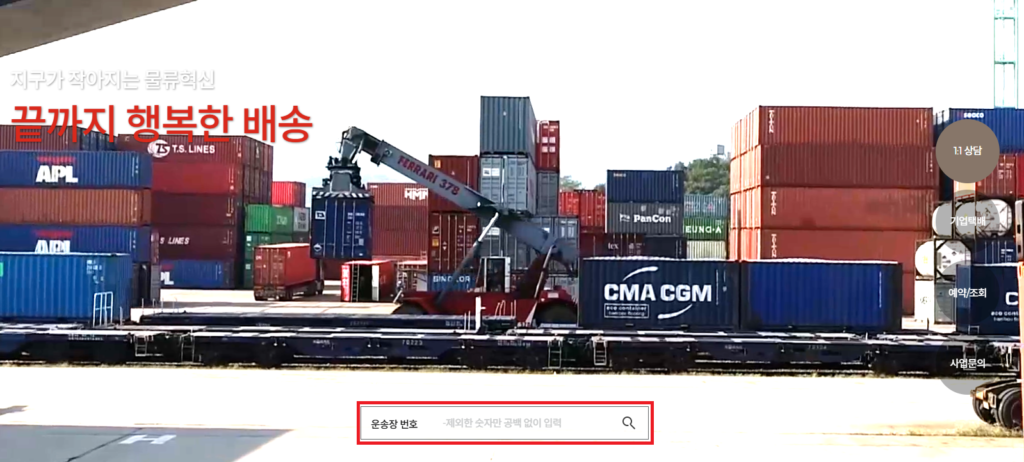 홈페이지 이동 후 운송장 번호 부분에 배송조회할 CU 편의점택배 운송장번호를 입력 후 [돋보기 모양 아이콘 (엔터)]를 클릭합니다.