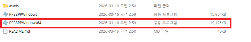 ▲ 다운로드한 압축 파일의 압축을 해제 후 [PPSSPPWindows64.exe]를 클릭하여 PPSSPP를 실행합니다.